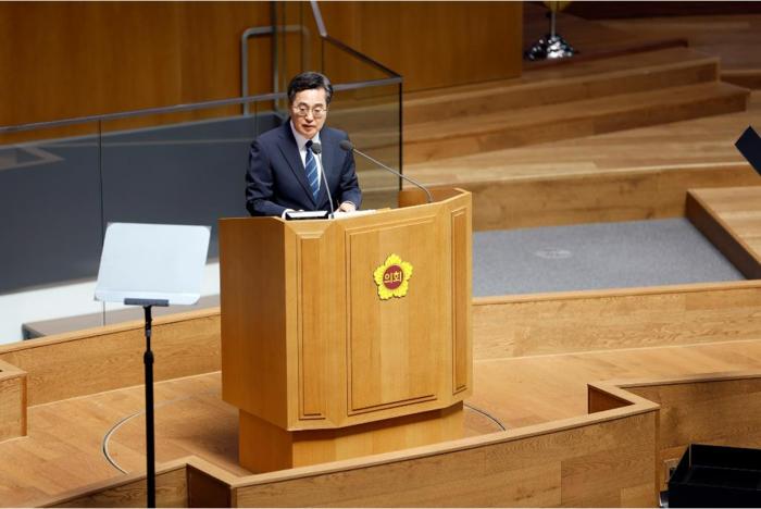 12일 오후 경기도의회 본회의장에서 김동연 경기도지사, 김규창 경기도의회 부의장 및 도의원들이 참석한 가