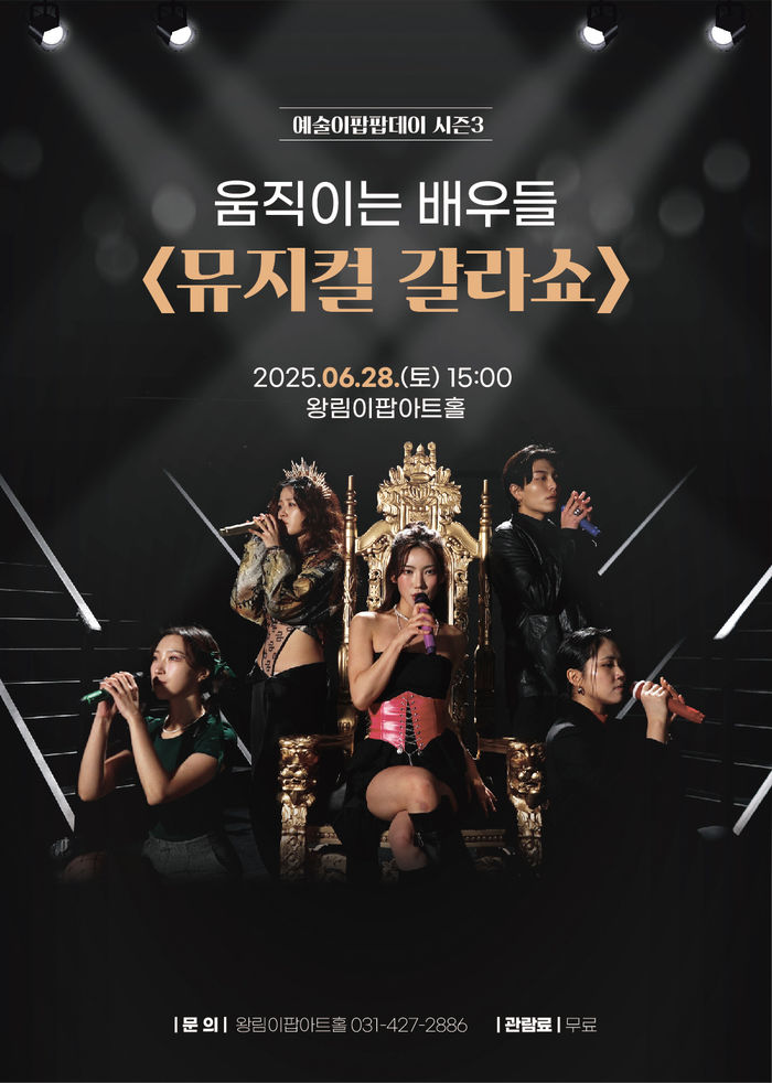 [경기뉴스탑(의왕)=장동근 기자]의왕시는 오는 6월 28일 오후 3시, 왕림이팝아트홀에서 유휴공간 문화재생 운영 사업인 「예술이 팝팝 데이」 시즌3의 첫 공연으로 ‘뮤지컬 갈라쇼’를 개최한다고 밝혔다.