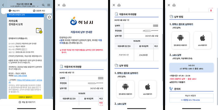 [경기뉴스탑(하남)=박찬분 기자]하남시는 올해 6월부터 지방세 고지서를 더 정확하고 빠르게 전달하고, 시민들이 세금을 더 편리하게 납부할 수 있도록 카카오톡 ‘모바일 지방세 납부 안내 서비스’를 본격적으로 시작한다고 밝혔다.