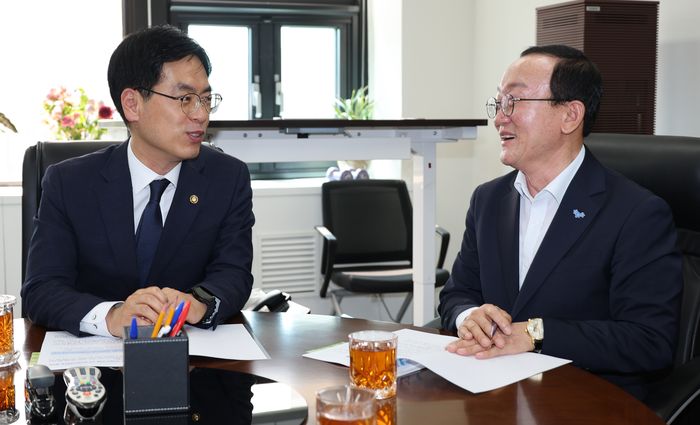 덕현 연천군수가 27일 정부서울청사에서 김민재 행정안전부 차관을 만나 연천 지역의 주요 현안 사항을 건의하고 있다.(사진=연천군)