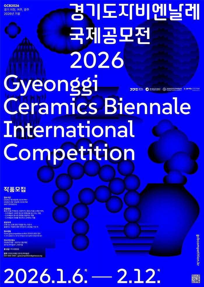 온라인 접수 기간은 내년 1월 6일부터 2월 12일까지로 참가를 원하면 2026경기도자비엔날레 국제공모전 누리집(gcbcompetition.kr)에서 작품 설명서, 작품 이미지 등 공모 양식에 맞춰 작성해 온라인 제출하면 된다.