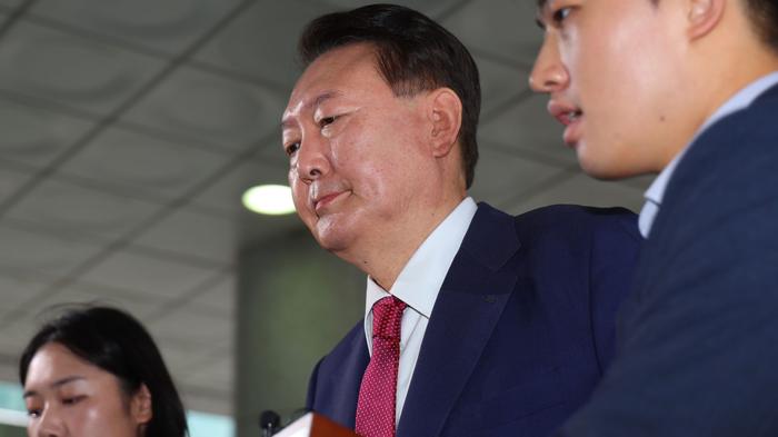 윤 전 대통령이 오전 9시 서울고검 청사에 도착해 조사실로 이동하고 있다.(사진=MBC뉴스 캡처)