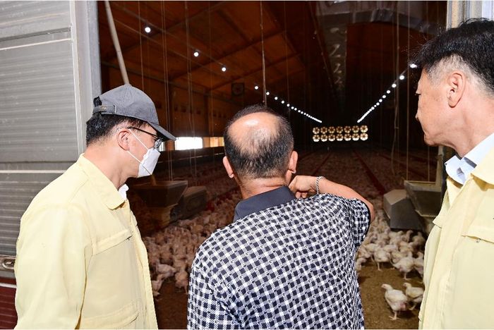 김대순 부지사는 이날 포천시 소재 육계농가를 찾아 폭염대응시설, 급수‧환기‧차열시스템 등의 설치상태를 점검하고, 폭염 속에서도 안정적인 가축사육을 위한 농가의 노력을 격려했다.