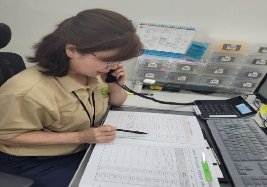 행복마을관리소 지킴이들이 독거노인을 대상으로 폭염 행동요령을 안내하면서 안부 전화를 하고 있다.(사진=경기도)