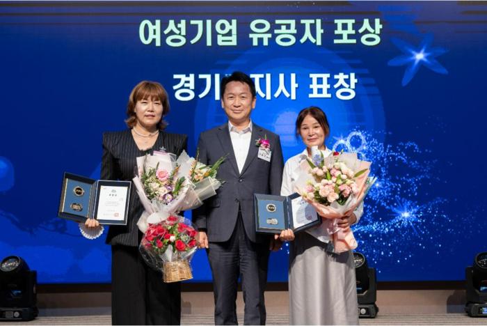 10일 오후 양주시 경기섬유종합지원센터에서 열린 제4회 경기북부 여성경제인대회에서 고영인 경제부지사가 우수여성기업인 표창을 수여하고 기념촬영을 하고 있다.