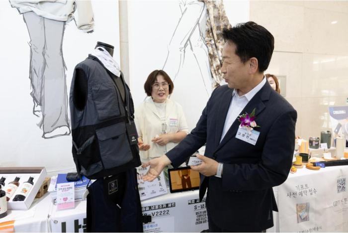 10일 오후 양주시 경기섬유종합지원센터에서 열린 제4회 경기북부 여성경제인대회에서 고영인 경제부지사가 여성기업 제품 홍보관 관람을 하고 있다.