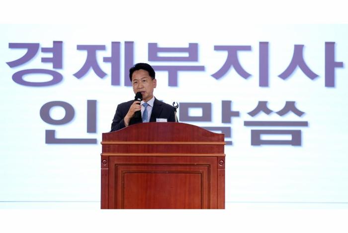 18일 오전 경기도경제과학진흥원에서 열린 7월 기우회에서 고영인 경제부지사가 인사말을 하고 있다.
