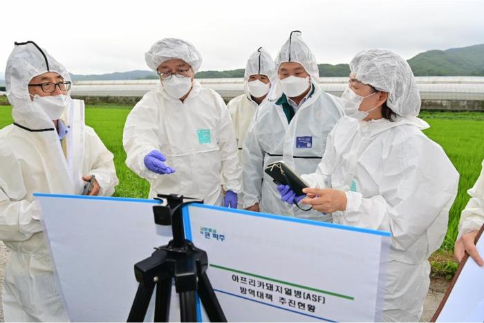 [경기뉴스탑(파주)=이윤기 기자]17일 오후 김대순 행정2부지사가 파주시 아프리카돼지열병(ASF) 발생농가를 방문 현장을 긴급 점검 하였다.(사진=경기도)