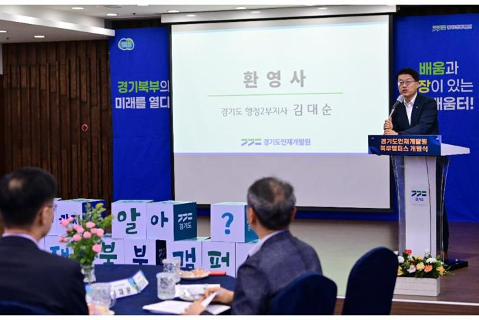 김대순 행정2부지사가 경기도인재개발원 북부캠퍼스 개원식에서 인사말을 하고 있다.