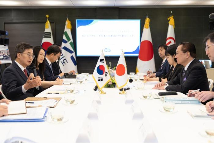 16일 오전 도담소에서 김동연 경기도지사가 구로이와 유지 가나가와현 지사 및 대표단과 면담을 하고 있다.
