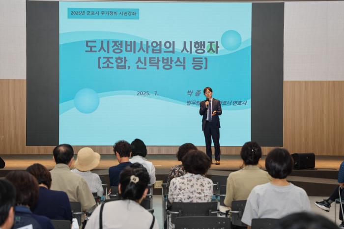 [경기뉴스탑(군포)=장동근 기자]군포시는 7월 17일(목) 시청 대회의실에서 재개발‧재건축 등 정비사업에 관심 있는 시민을 대상으로 “2025년 정비사업 시민강좌” 제3회 강의를 개최했다,