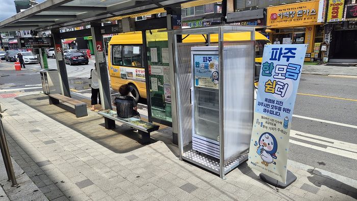 ‘한모금 쉼터’는 도심 내 유동인구가 많은 장소에 생수를 비치하여 무더위 속 시민들이 잠시나마 갈증을 해소할 수 있도록 설치한 폭염대응 시설이다. 올해는 ▲GTX 운정중앙역 ▲야당역 앞 횡단보도 ▲문산 북파주농협 앞 ▲조리 봉일천중학교 사거리 ▲금촌 주말농장 앞 등 5개소에 설치해 운영한다.