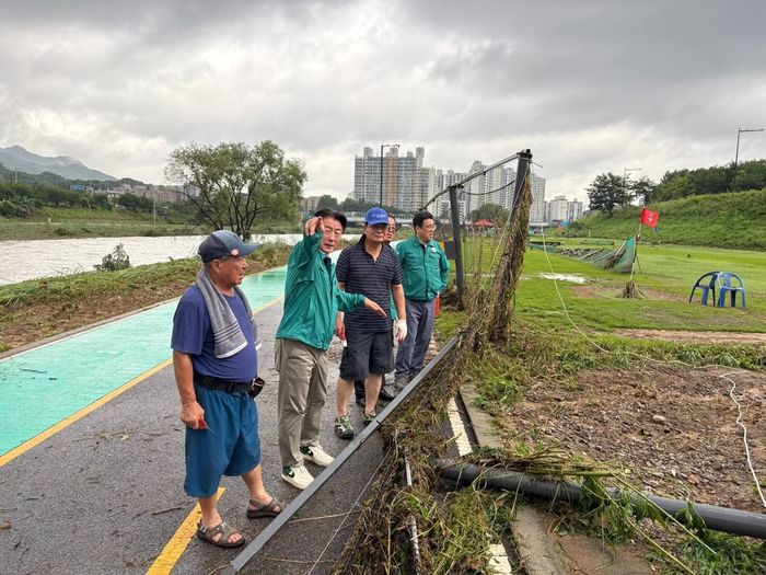 김동근 시장은 이날 아침 장암동 하천 주변의 파크골프장 피해 현장을 찾아 복구 작업에 직접 나선 시민들과 회원들에게 감사의 뜻을 전했다. 현장에서 김 시장은 “신속한 복구를 위한 행정적 지원을 아끼지 않겠다”고 말하며 복구 의지를 밝혔다.