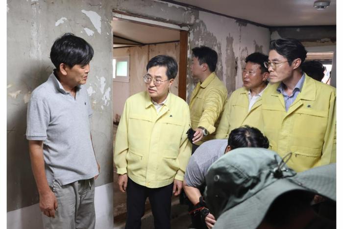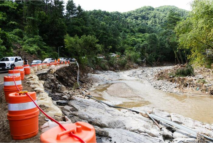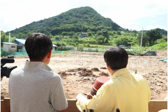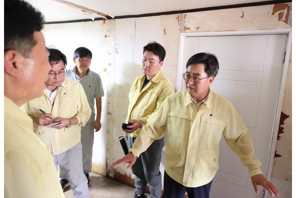 [경기뉴스탑(가평)=이윤기 기자]22일 오후 김동연 경기도지사가 가평군 조종면 집중호우 피해지역 현장 및 이재민 대피소 방문을 했다.9사진=경기도)