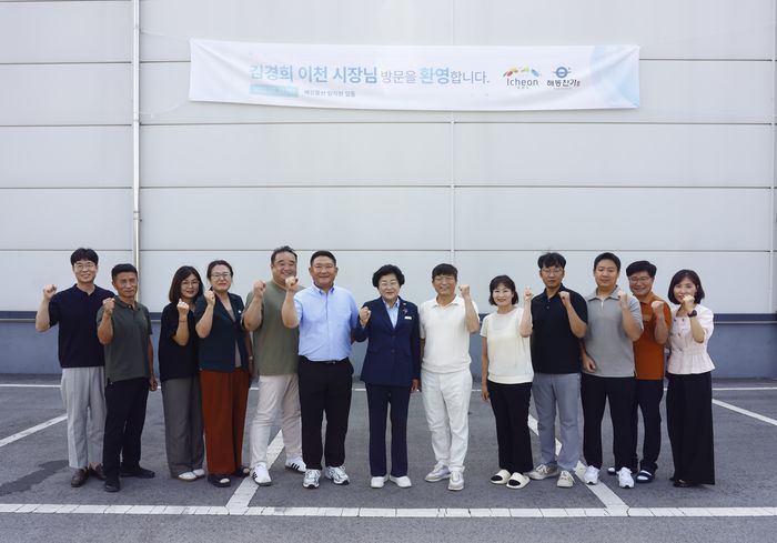 [경기뉴스탑(이천)=박찬분 기자]김경희 이천시장은 지난 29일, 이천시 백사면 내촌리에 위치한 식품제조업체 해강물산(주)를 방문해 기업의 생산현장을 둘러보며, 애로사항을 청취하고 임직원을 격려하는 자리를 가졌다.
