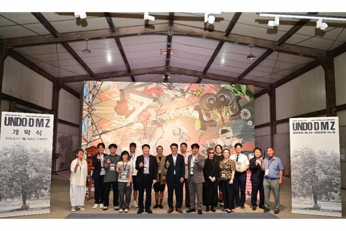 2025 DMZ OPEN 페스티벌 전시 개막식에서 기념촬영을 하고 있다.