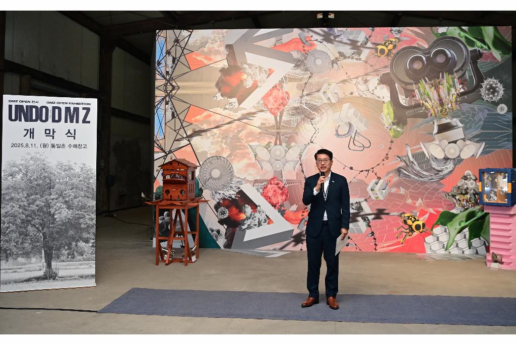 2025 DMZ OPEN 페스티벌 전시 개막식에서 김대순 행정2부지사가 개막사를 하고 있다.