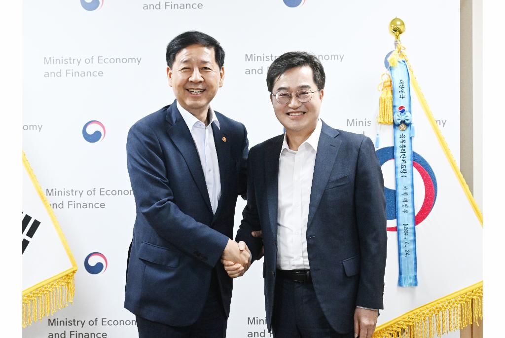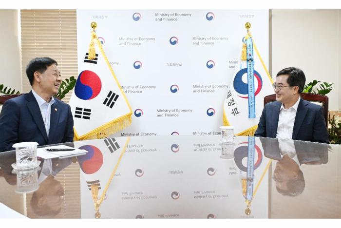 [경기뉴스탑(수원)=장동근 기자]7일 오후 정부서울청사 경제부총리실에서 김동연 경기도지사가 구윤철 경제부총리와 면담을 하였다.(사진=경기도)