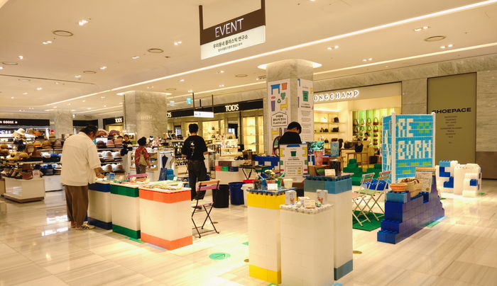 [경기뉴스탑(수원)전순애 기자]경기도 업사이클플라자 입주기업인 ㈜동네형이 현대백화점 천호점과 협업해 지난 7월 8일부터 21일까지 14일간 ‘플라스틱 리본(Plastic Reborn)’ 팝업스토어를 선보였다.