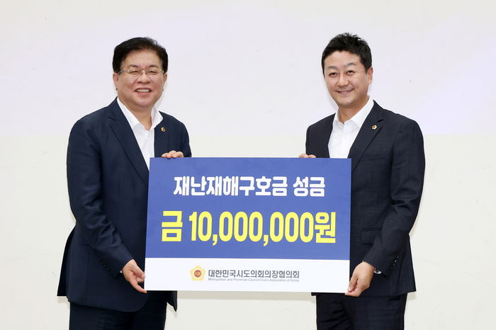 [경기뉴스탑(수원)=장동근 기자]김진경 경기도의회 의장(더불어민주당, 시흥3)은 8월 11일 세종시 정부세종컨벤션센터에서 열린 ‘2025년 대한민국시도의회의장협의회 정기회’에 참석해, 경기 가평 등 집중호우 피해지역에 대한 재난재해구호금을 전달받았다고 밝혔다.