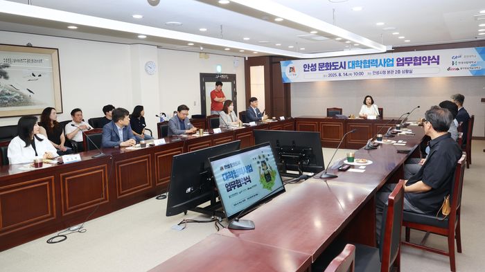 [경기뉴스탑(안성)=전순애 기자]안성시는 문화도시 조성사업의 일환으로, 청년 창작 기반을 확충하고 지역 문화산업 생태계를 강화하기 위해 중앙대학교, 한경국립대학교, 동아방송예술대학교와 ‘문화도시 대학협력사업 업무협약식’을 체결했다고 14일 밝혔다.