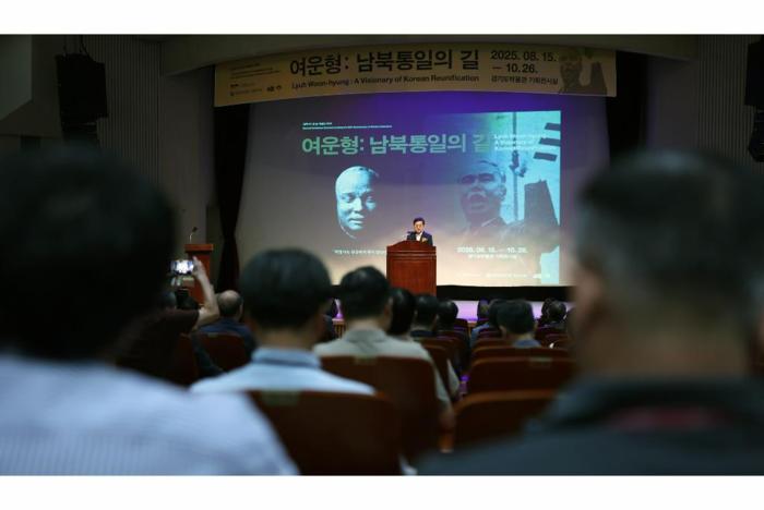 [경기뉴스탑(수원)=장동근 기자]14일 오후 경기도박물관에서 김동연 경기도지사, 몽양기념관 관계인사 및 문화예술계 인사, 도민 등 100여명이 참석한 가운데 경기도박물관 ‘여운형:남북통일의 길’ 전시 개막식이 열렸다.(사진=경기도)