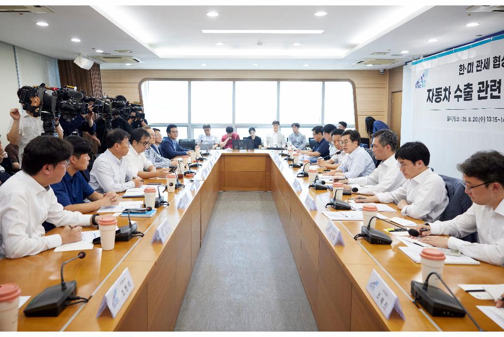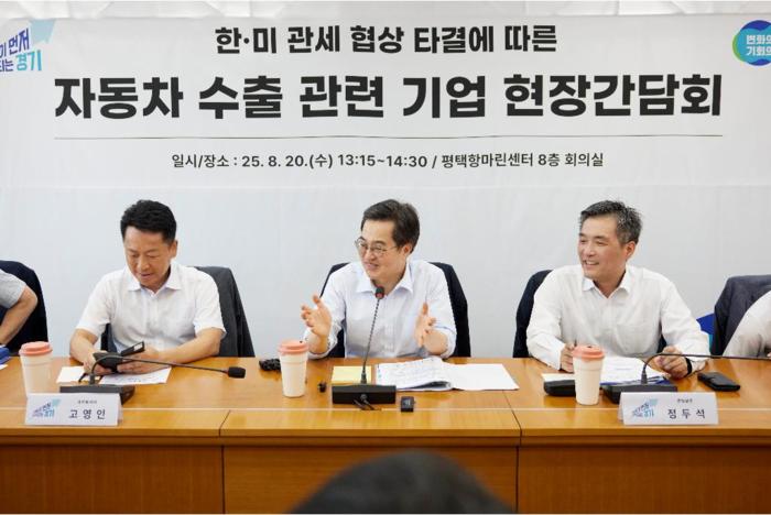 [경기뉴스탑(평택)=전순애 기자]20일 오후 평택항마린센터에서 김동연 경기도지사와 현대차 등 자동차 업계 관계자들이 참석한 가운데 관세협상 타결에 따른 후속조치 논의 및 車 업계 애로사항 청취를 위해 자동차 수출기업 관계자 현장간담회가 열렸다.