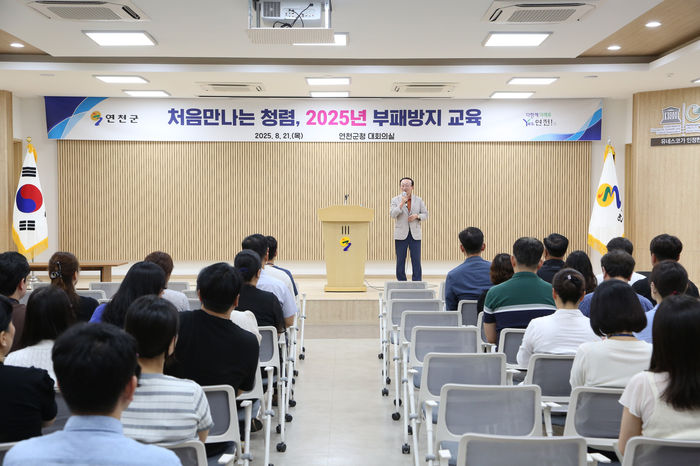[경기뉴스탑(연천)=이윤기 기자[연천군은 지난 21일 군청 대회의실에서 신규 공직자를 대상으로 ‘청렴·윤리 교육’을 실시하며, 공직사회 청렴문화 확산과 투명한 조직 운영을 위한 의지를 다졌다.