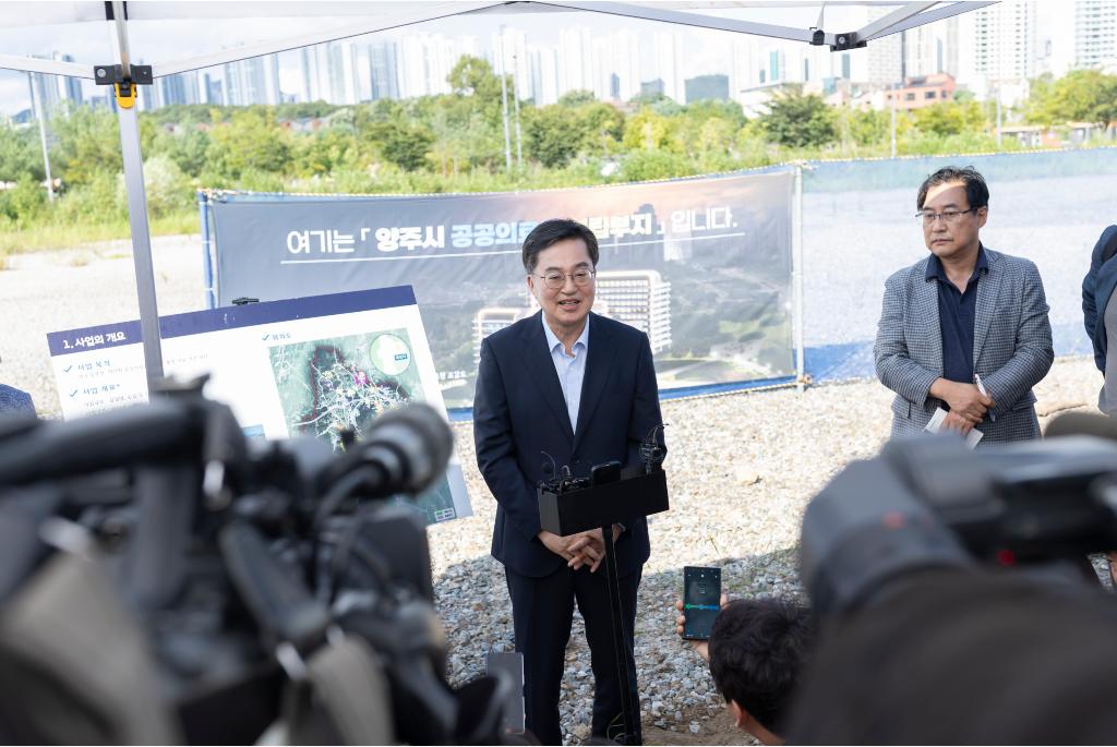 [경기뉴스탑(양주)=이윤기 기자]26일 오후 옥정호수도서관에서 김동연 경기도지사, 강수현 양주시장, 보건의료 전문가, 지역주민 등이 참석한 가운데 공공의료원 설립 현장 설명회를 진행하고 공공의료원 예정부지 점검을 하였다.