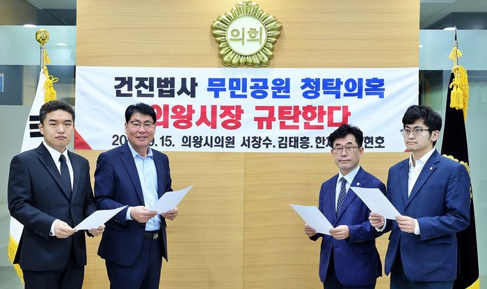 의왕시의회 4인방은 결의문을 통해 의왕시장과 집행부에 △무민공원 사업 관련 모든 문서·협의 내역·외부 접촉 기록 공개 △건진법사 연루 청탁 및 금품수수 의혹에 대한 명확한 해명 △관련자 전원에 대한 엄정한 법적·행정적 조치 등을 요구했다.