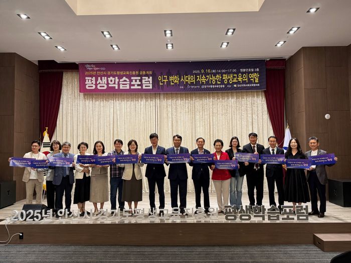 [경기뉴스탑(안산)=육영미 기자]경기도평생교육진흥원은 16일 안산 엠블던호텔에서 안산시와 공동으로 ‘인구 변화 시대의 지속가능한 평생교육의 역할’을 주제로 평생학습포럼을 열었다.