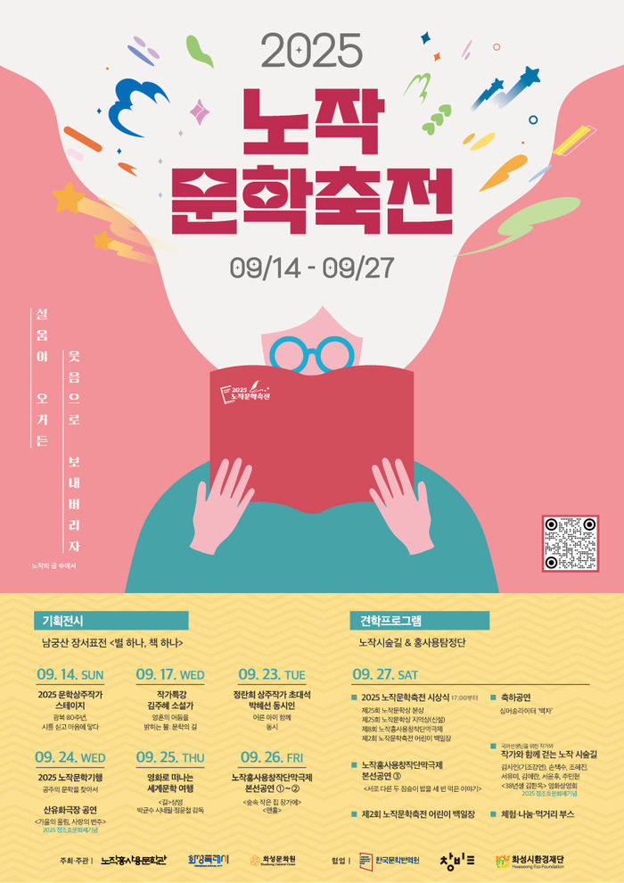 "설움이 오거든 웃음으로" ...화성시, 2025 노작홍사용문학관 노작문학축전 개최 김주혜, 나태주, 김사인, 김애란, 조해진, 서유미, 서윤후, 주민현 등과 함께하는 한국 문학의 현재와 미래 문학기행, 작가와의 만남, 어린이백일장, 연극 및 노래 공연, 영화 상영, 전시, 체험, 시상식 등 다채로운 행사 전순애 기자 2025-09-17 15:47:28