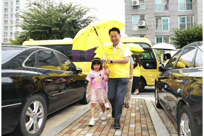 16일 오후 남양주다함께돌봄센터에서 열린 경기도 아이가치 플러스 현장방문에서 고영인 경제부지사가 아동 픽업 서비스 체험을 하고있다.