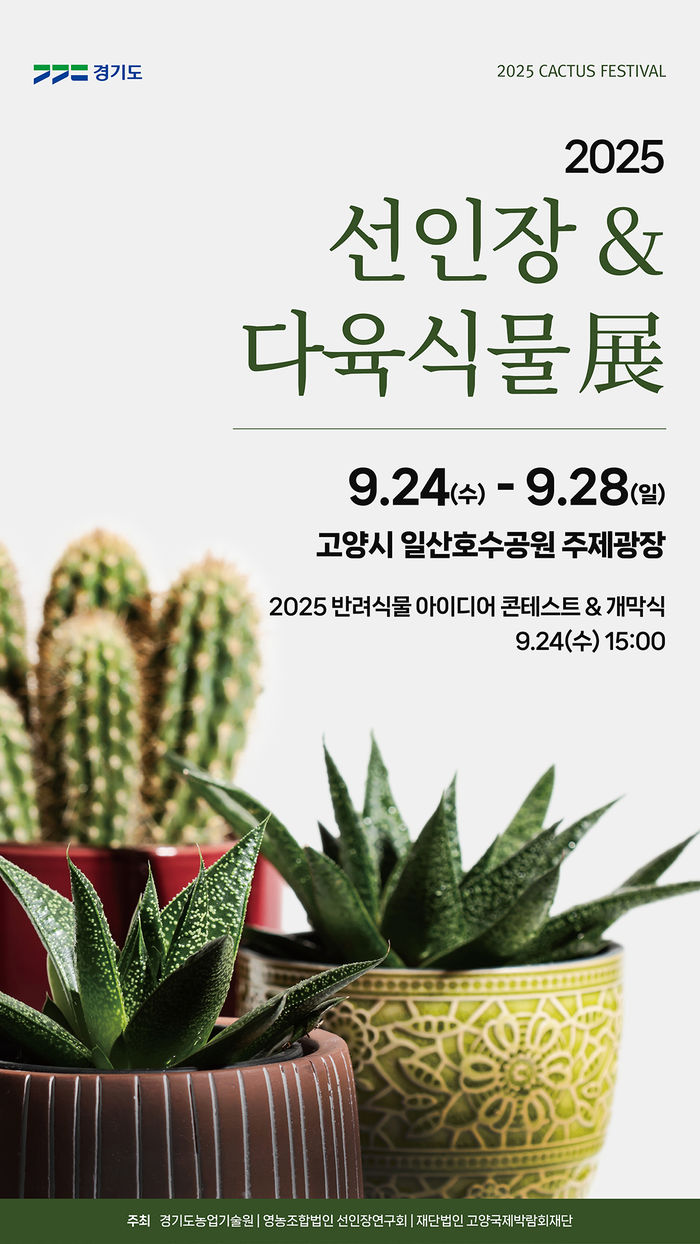 [경기뉴스탑(고양)=이윤기 기자]가을 나들이에 특별한 즐길 거리를 찾는다면 희귀 선인장과 다육식물을 한자리에서 만날 기회가 열린다. 경기도농업기술원은 영농조합법인 선인장연구회, (재)고양국제박람회재단과 함께 24일부터 28일까지 고양시 일산호수공원 주제광장에서 ‘2025 선인장&다육식물展’을 개최한다고 18일 밝혔다.