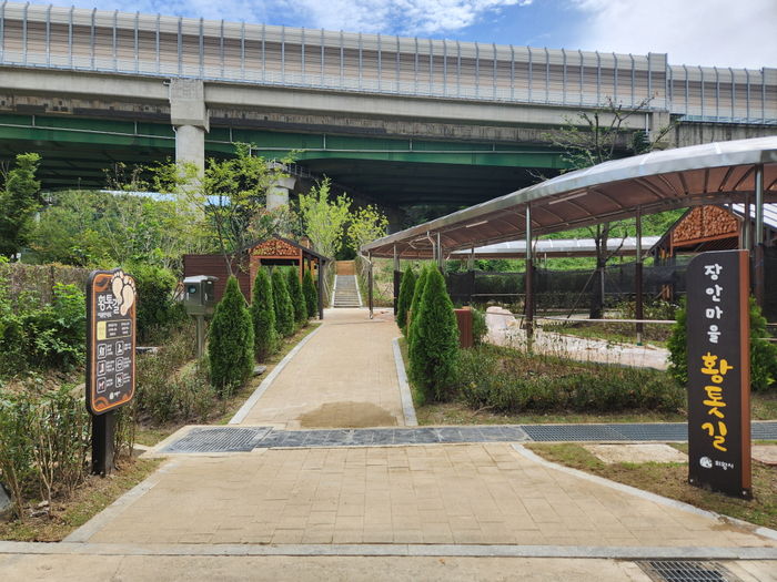 ‘장안마을 황톳길’은 총연장 110m의 순환형 산책로로 조성됐으며, 폭 2.5m의 넓은 길이 시원한 개방감을 제공한다. 이와 함께 70m 길이의 마사톳길도 함께 마련돼 시민들이 다양한 방식의 맨발 걷기를 즐길 수 있도록 설계됐다.