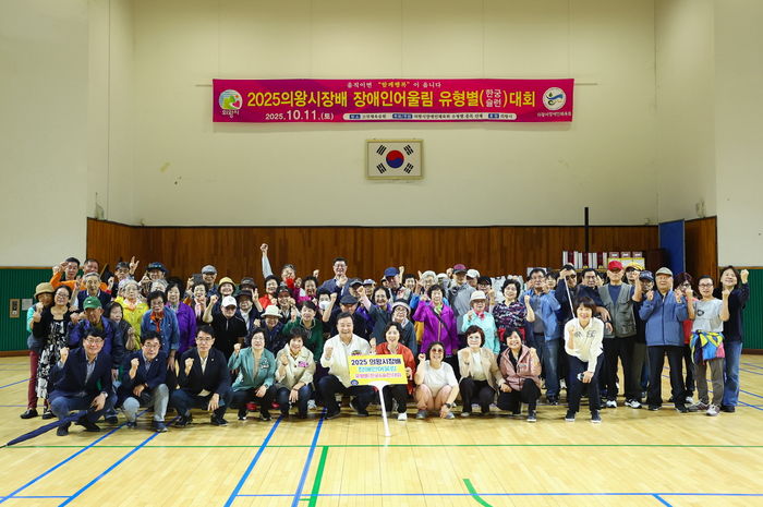 [경기뉴스탑(의왕)=장동근 기자]의왕시가 10월 11일 개최한 ‘2025 의왕시장배 장애인종목별체육대회’가 1,000여 명의 참가자와 함께 성황리에 마무리됐다. 이번 대회는 장애인과 비장애인이 함께 어울리는 방식으로 진행돼 스포츠를 통한 소통과 통합의 의미를 더했다.