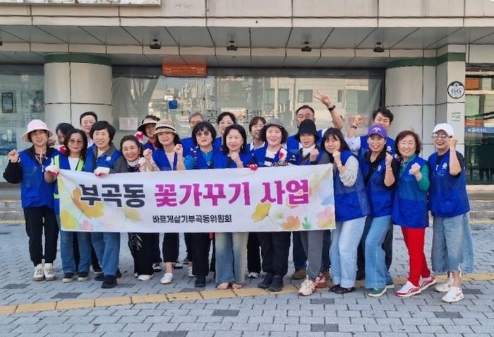 [경기뉴스탑(의왕)=장동근 기자]의왕시 부곡동 바르게살기위원회가 최근 ‘부곡동 꽃 가꾸기’ 행사를 통해 의왕역 앞 화단을 정비하고 가을을 대표하는 국화를 식재했다. 이번 행사는 위원회 회원 20여 명이 참여해 지역 환경 개선에 앞장섰다.