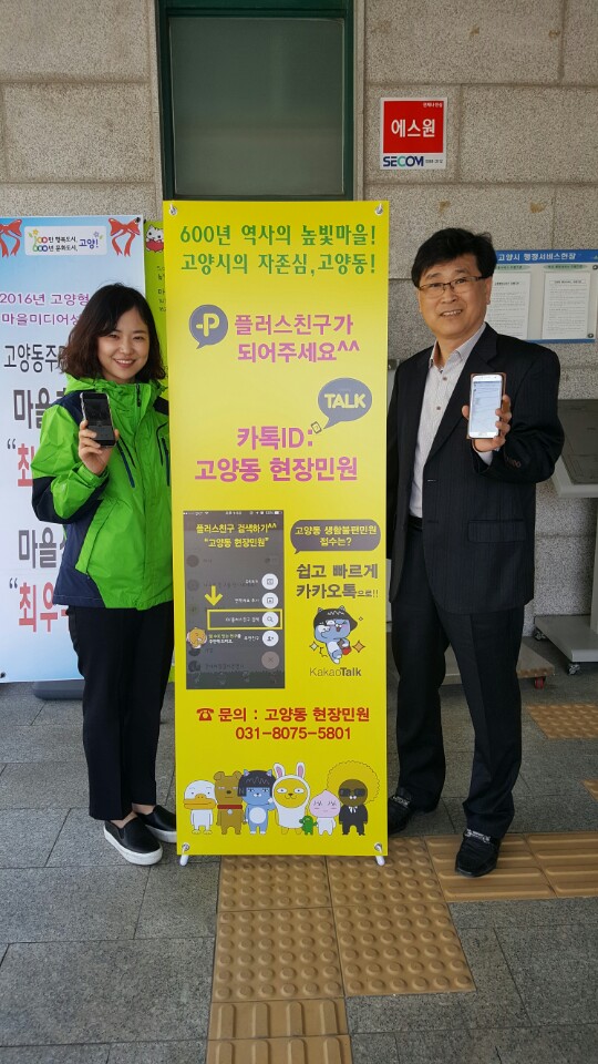 고양동은 관련부서와 긴밀한 협조체계를 구축해 연간 155건의 생활불편민원을 해결했다. 또 365일 공감하고 SNS로 소통하고자 고양시 동 최초로 카카오톡 플러스 고양동 현장민원을 개설로 민원소통을 강화하고 전 직원이 참여하는 현장민원 일일 순찰제, 현장민원주부시정모니터 밴드 활성화 등 스마트 현장민원을 추진해 왔다.