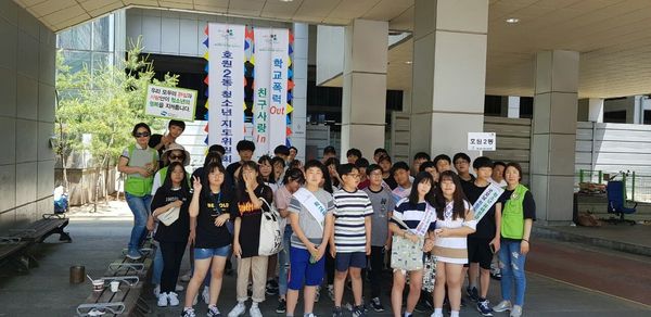 ‘학교폭력 Out, 친구사랑 In’ 슬로건으로 진행 된 이번 캠페인은 피켓을 들고 슬로건을 외치며 학교폭력에 대한 심각성을 알리고 학교폭력 예방에 대해 시민들의 관심을 유도했다.