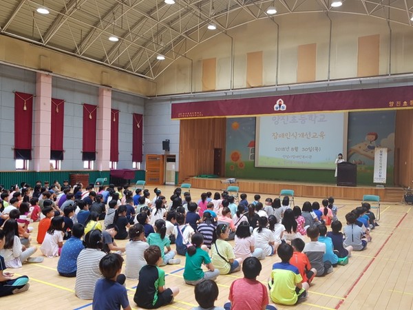 안성시 장애인복지관은 지난 8월 30일에 공도읍 양진초등학교 3학년 학생들 127명을 대상으로 장애인 인식개선교육을 실시하였다.