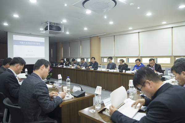 [경기뉴스탑(의왕)=장동근 기자]김상돈 의왕시장은 1일 시청 소회의실에서 지난 7월 착수보고회를 시작으로 약 4개월간 진행된‘조직진단 연구용역 최종보고회’를 열고 민선7기 조직개편 방향을 논의했다.