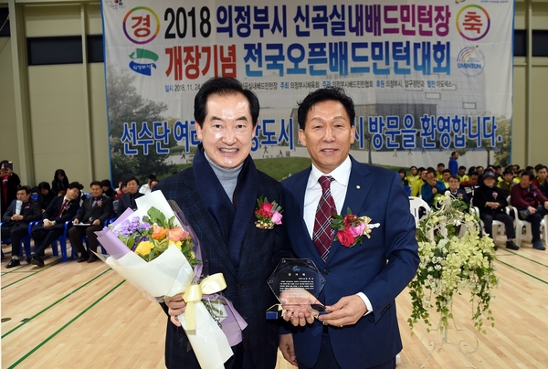 [경기뉴스탑(의정부)=이윤기 기자]의정부시에서 전국 오픈 배드민턴대회가 개최 되었다. 의정부시는 11월 24일부터 25일까지 추동근린공원 내 신곡실내배드민턴장 개장 기념 ‘2018 전국 오픈 배드민턴대회’를 개최했다.