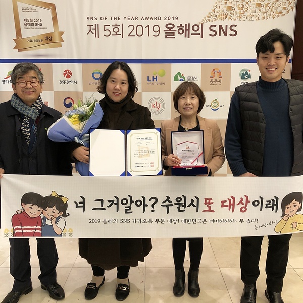 수원시가 한국소셜콘텐츠진흥협회가 주최하는 ‘제5회 올해의 SNS 대상’ 카카오톡 부문 대상을 받았다. 시상식은 19일 서울 중구 LW컨벤션센터에서 열렸다.