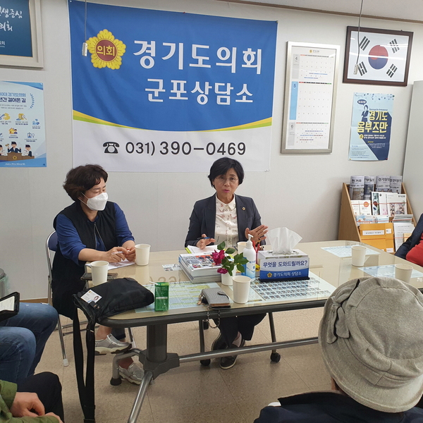 경기도의회 군포상담소에서 정담회를 진행하고 있는 김미숙 도의원(사진=경기도의회 제공)