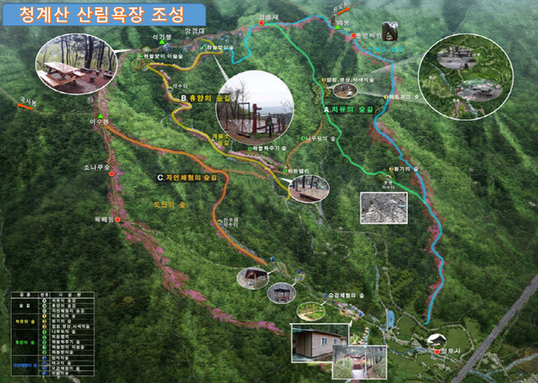 성남시는 6억2400만원을 들여 치유·휴양·자연체험 3가지 주제의 숲길이 있는 청계산 산림욕장을 조성하고, 운영·관리를 맡는다.