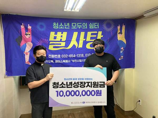 [경기뉴스탑(부천)=육영미 기자]부천시일시청소년쉼터(소장 한태경)는 지난 13일 가정 밖 청소년의 성장을 지원하기 위한 프로젝트인 ‘꿈테크’ 지원금 전달식을 진행했다.
