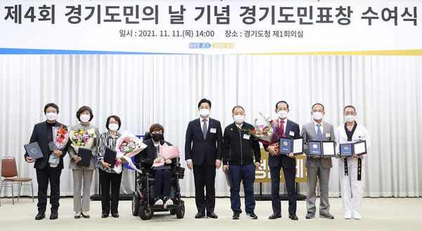 도는 코로나19 확산으로 도민의 날 기념식 등 행사는 열지 않지만, 표창의 영예와 수상자의 자부심을 높이고자 참석자를 최소화해 도청에서 별도 수여식을 개최, 오병권 경기도지사 권한대행이 표창을 수여했다.