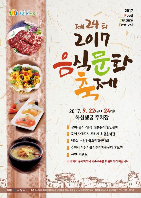 수원시는 제54회 수원화성문화제 기간인 22~24일 수원화성 행궁 주차장에서 ‘2017 음식문화축제’를 연다.