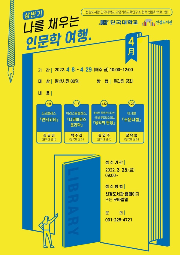 [경기뉴스탑(수원)=전순애 기자]수원시 선경도서관이 단국대학교와 협력해 인문학 강좌 ‘나를 채우는 인문학 여행’을 연다.