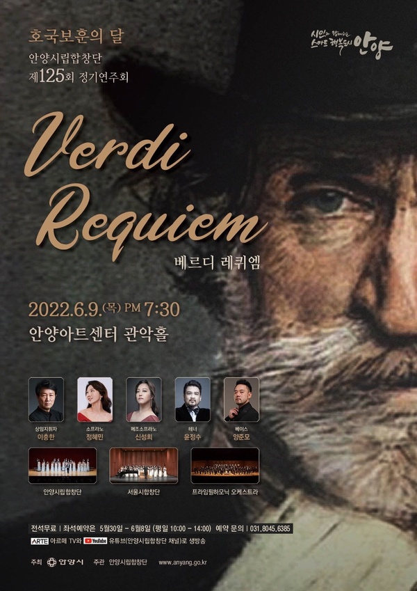 안양시는 오는 9일 오후 7시 30분 안양아트센터 관악홀 무대에 오르는 안양시립합창단의 제125회 정기연주회‘베르디 레퀴엠’을 호국보훈의 달 특집으로 꾸민다고 7일 밝혔다.